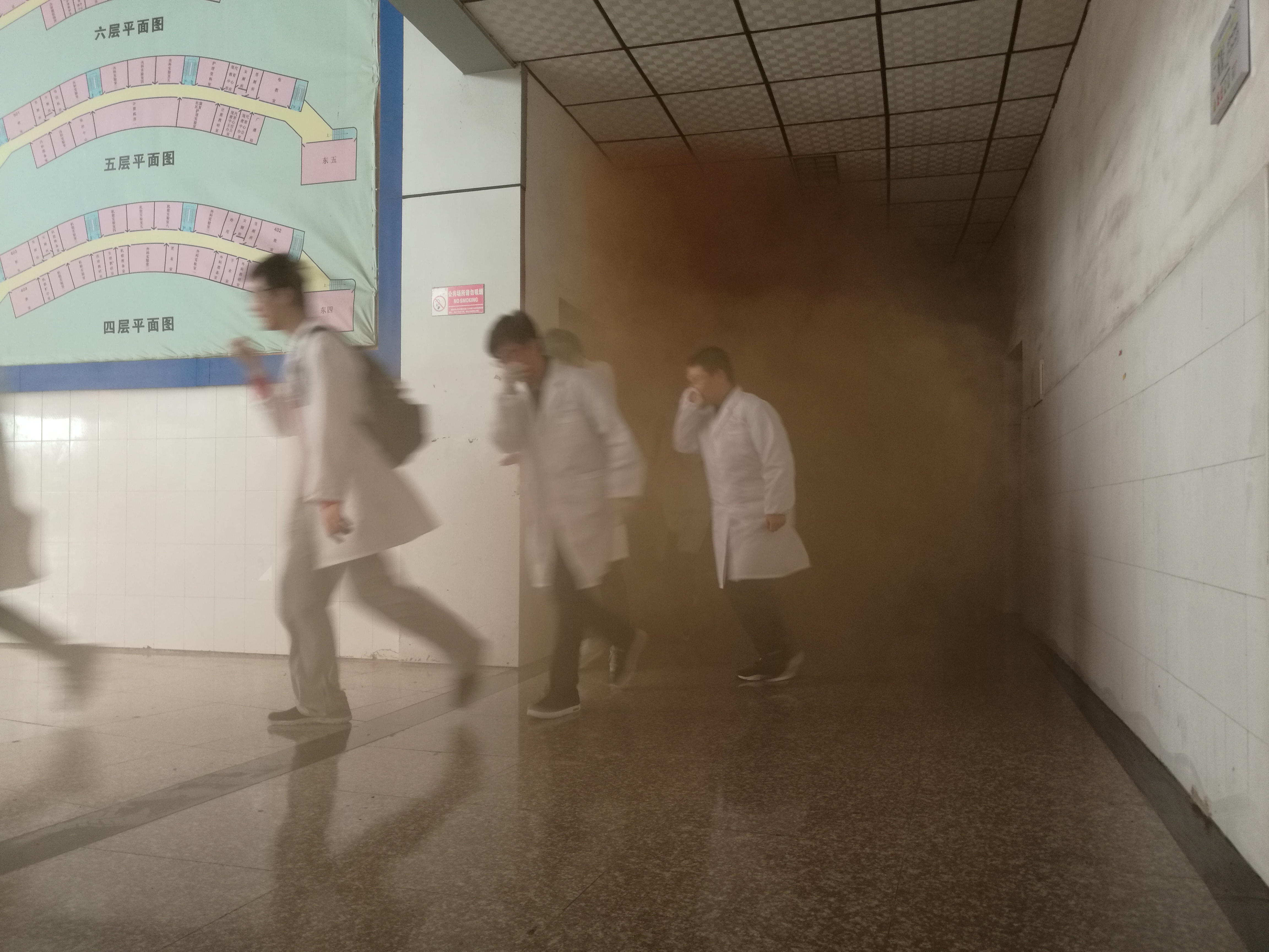 在灭火器、防毒面具实操演练中,教师按要求进行了现场操作,提升了实际操作能力。随着烟雾弹燃放,现场的100多位学生们按照疏散路线有秩序地迅速撤离,到达指定地点汇合。
