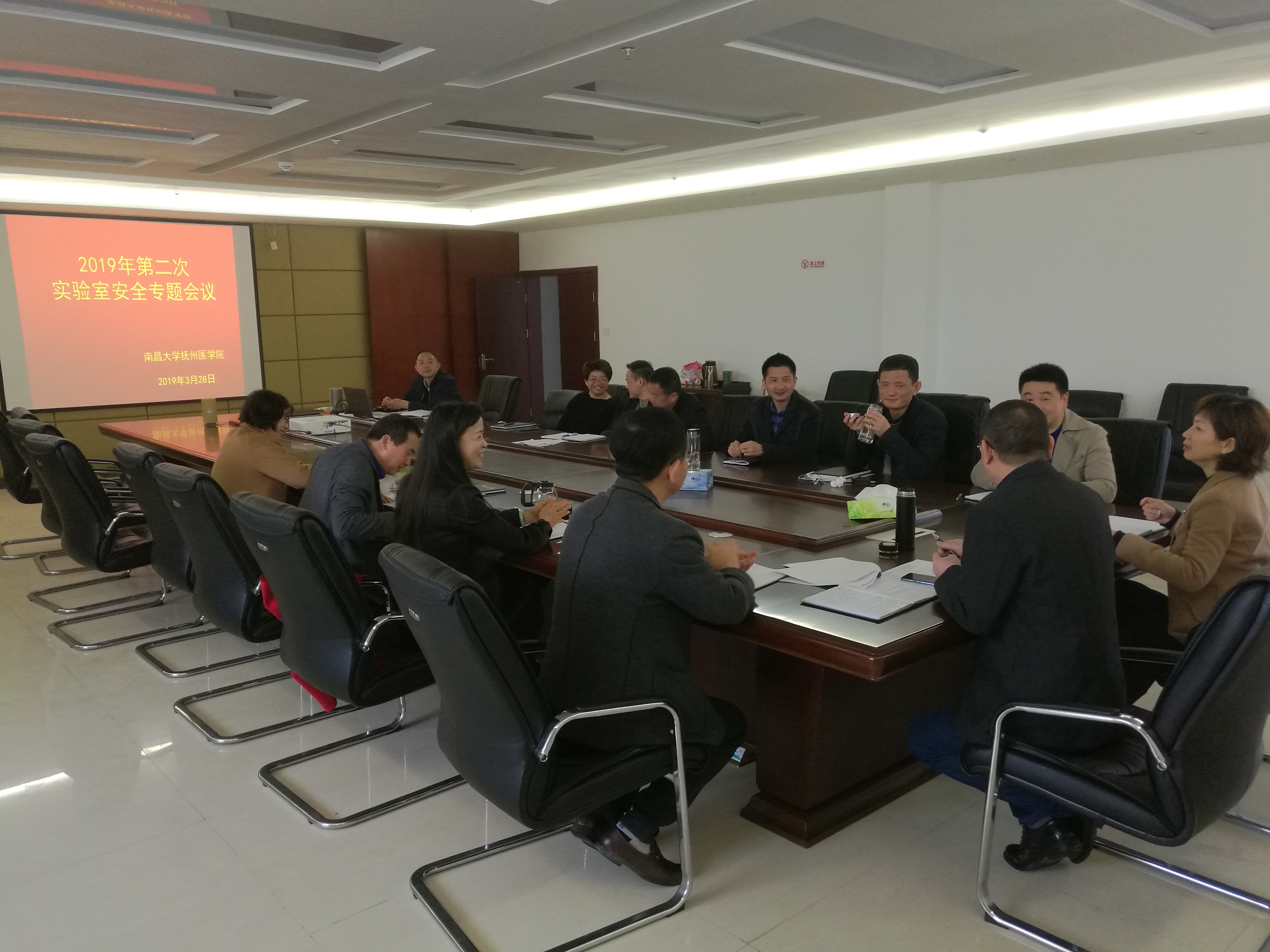 3月28日上午,我院在办公楼五楼会议室召开2019年第二次实验室安全工作专题会议。会议由院党委书记何琴主持,学院党政领导班子成员出席会议,教务处、科研处、资产处(招标采购中心)、质管办负责人参加会议。